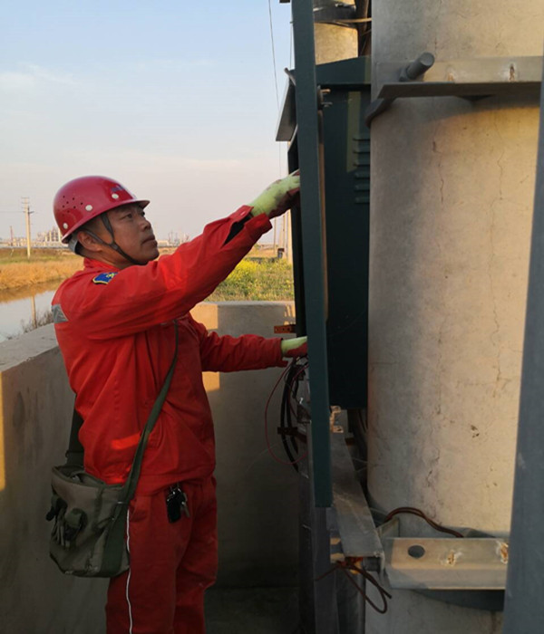 他,工作細(xì)致業(yè)務(wù)硬。多年來,他以所為家,幾乎沒有節(jié)假日和周末。不管是嚴(yán)寒酷暑,還是天氣惡劣,只要一有任務(wù),總是搶在前面,毫無怨言,風(fēng)雨無阻。一次,已經(jīng)在家休息的他接到所里搶修電話,立馬驅(qū)車前往現(xiàn)場。經(jīng)查看,勝利圩一個(gè)臺(tái)變的配電箱和變壓器起火,該臺(tái)變控制著附件1000畝魚塘和20戶居民的用電,如維修不及時(shí),將造成魚塘缺氧,魚苗死亡,帶來巨大經(jīng)濟(jì)損失。為了將損失降到最低,他帶領(lǐng)班組成員,克服天氣熱,蚊蟲多等困難,一直奮戰(zhàn)到凌晨3點(diǎn),終于更換完成損壞設(shè)備。