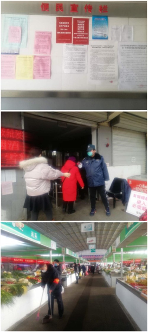 強化市場內部管控。為進一步避免人群大規(guī)模聚集,調整市場開放、關閉時間,緩解人流量,勸導群眾不信謠、不傳謠,無需恐慌搶購。督促農貿市場100多戶經營戶每天提前全部做好物資的擺放,所有進出市場人員保留1個進出口通道依次進出,并指派專人在入口負責體溫檢測;對進入市場的等各類車輛實行指定區(qū)域有序停放,確保市場內無占道現象。
