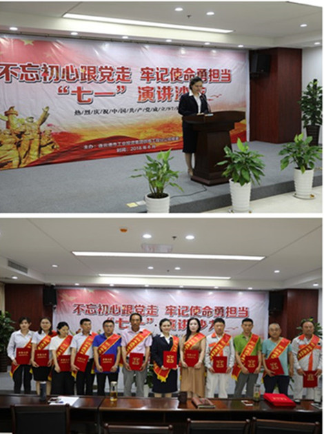 為慶?!捌咭弧敝袊?guó)共產(chǎn)黨成立97周年,6月28日下午,公司黨委舉辦“不忘初心跟黨走 牢記使命永擔(dān)當(dāng)”主題演講沙龍活動(dòng)。公司領(lǐng)導(dǎo)班子、各單位班子成員,機(jī)關(guān)全體人員等70余人觀看沙龍。演講期間,對(duì)2017—2018年度先進(jìn)黨支部、先進(jìn)黨小組、優(yōu)秀共產(chǎn)黨員、優(yōu)秀黨務(wù)工作者進(jìn)行了表彰。