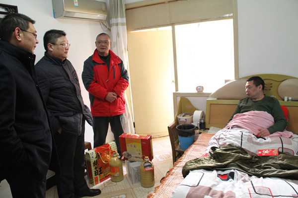 2月2日,在公司黨委書記、經(jīng)理孫政權(quán)陪同下,集團(tuán)公司領(lǐng)導(dǎo)匡友本一行走訪慰問了巨龍農(nóng)貿(mào)市場(chǎng)困難職工徐杰、劉元國(guó)等家庭,并送去了慰問品和慰問金??锟傇敿?xì)詢問了受訪職工身體健康狀況、家庭生活情況,鼓勵(lì)他們堅(jiān)定信心,戰(zhàn)勝困難和疾病。公司工會(huì)主席王志軍一同參加。﹙徐靜﹚