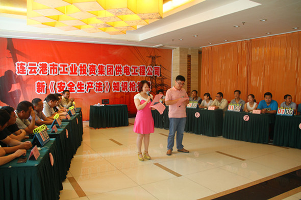 為了增強(qiáng)企業(yè)員工的安全意識(shí),強(qiáng)化安全生產(chǎn)依法治理。近日,公司在淮鹽大酒店舉行安全知識(shí)搶答賽。來(lái)自該公司機(jī)關(guān)及各單位的8支代表隊(duì)共24名選手參加了比賽。