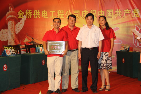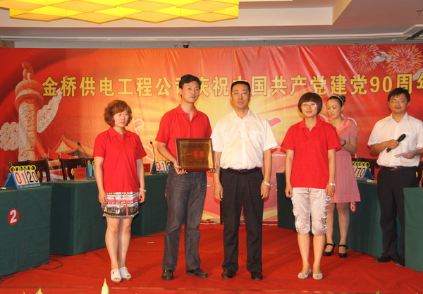 6月29日,公司舉行紀念建黨90周年知識搶答賽,共有八支代表隊參加。經(jīng)過角逐,公司機關黨支部代表隊、灌西供電所黨支部代表隊和徐圩供電所黨支部代表隊分獲一、二、三等獎。(司宣)