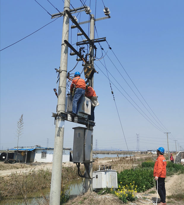 近年來,淡水養(yǎng)殖不斷擴(kuò)大高密度養(yǎng)殖規(guī)模,充氧設(shè)備逐漸增加,夏季高溫臺變用電負(fù)荷大增,養(yǎng)殖區(qū)部分變壓器不堪重負(fù)。為了保障廣大養(yǎng)殖用戶生產(chǎn)生活用電,確保供電設(shè)備經(jīng)得起高溫負(fù)荷的“烤”驗(yàn)。當(dāng)天上午八點(diǎn)半,在辦理好相關(guān)停電手續(xù),停電、驗(yàn)電、安裝接地線、安全交底等各項(xiàng)準(zhǔn)備工作的基礎(chǔ)上,在組長余榮欣的統(tǒng)一指揮下全組人員克服困難開始拆除舊變壓器,吊離變壓器,安裝新變壓器……經(jīng)過近5個(gè)小時(shí)奮戰(zhàn),順利完成2處變壓器更換安裝工作任務(wù),提前做好迎峰度夏“保衛(wèi)”工作。