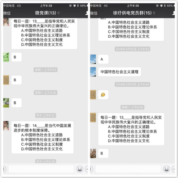 為促進黨員更好的了解十九大精神,切實做到學懂弄通做實,公司黨委充分發(fā)揮微信網(wǎng)絡平臺靈活便捷、互動性強的優(yōu)勢,開展了“微考堂”“每日一題”學習活動。公司黨群工作部每日通過微信群出題,大家搶答。題目緊扣十九大會議精神、習總書記講話精神、新黨章等重點內(nèi)容,并定期組織黨員開展網(wǎng)絡答題考核,確保黨員真學真做。(電宣)