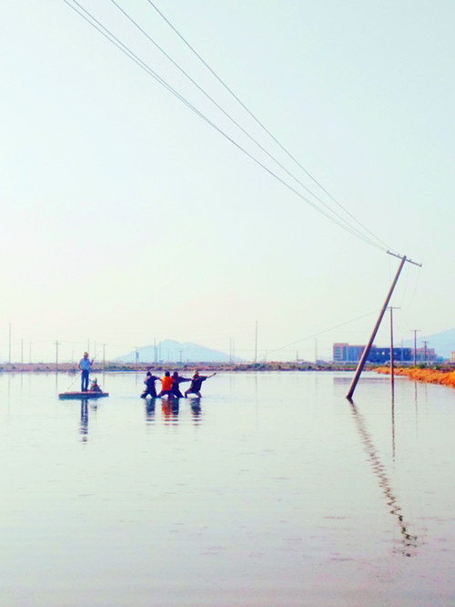 9月20日,該所組織人員進(jìn)行搶修。搶修人員經(jīng)過現(xiàn)場勘查后,發(fā)現(xiàn)隱患地點處于池塘中,搶修車輛等大型工器具無法到達(dá),只能靠人工搶修。在與魚塘養(yǎng)殖戶協(xié)商后,俞德春、楊祖加、楊新軍等搶修人員在對低壓線路采取停電、驗電、掛接地等安全措施后,利用小木船來回穿梭、傳送材料,再跳入沒腿深的水里,將電桿扶正、加固。此時,水面上的船、水中的人、拖拽的線路成了鏡頭中的新聞亮點。最后在經(jīng)過半個多小時的特色搶修后,成功恢復(fù)供電。(錢明華)