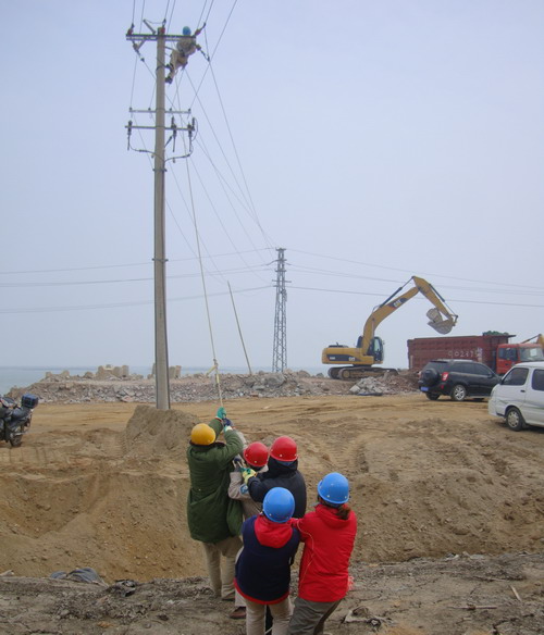11月17日,臺北供電所全體職工放棄休息,在開發(fā)區(qū)大浦工業(yè)園區(qū)架設(shè)供電線路,保證園區(qū)建設(shè)單位按時開工。