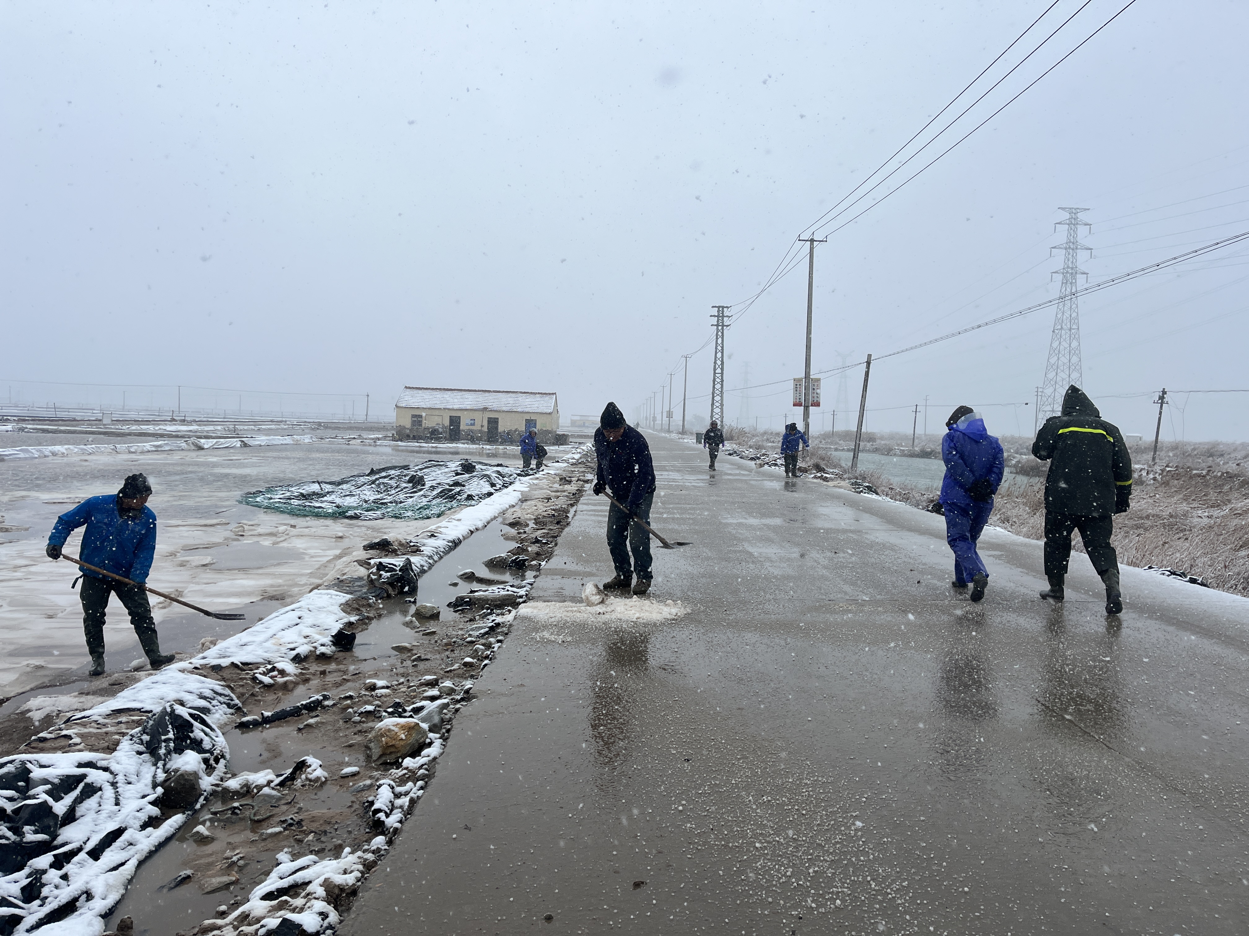 以雪為令,全力奔赴清雪戰(zhàn)一線。隨著降雪量增大,采取“人工+機(jī)械”的作業(yè)方式,使用自產(chǎn)原鹽融雪劑對(duì)轄區(qū)中二圩居民點(diǎn)、鹽灘內(nèi)部道路、辦公區(qū)域等20余條主次干道不間斷地毯式清雪除冰作業(yè)。清雪現(xiàn)場(chǎng),大家不畏嚴(yán)寒,積極行動(dòng),鏟的鏟、推的推,干得熱火朝天,開辟出一條方便群眾出行的“安全路”。截止目前,已累計(jì)出動(dòng)車輛30余臺(tái)次,300余人次參與清雪除冰行動(dòng),確保職工群眾“雪中通行,雪后路清”。