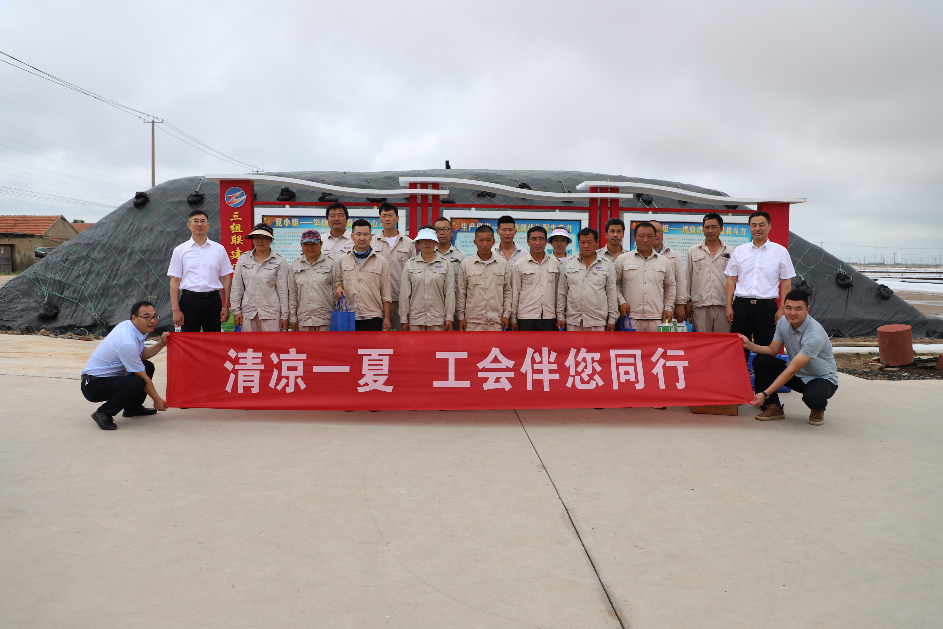 “高溫天氣,大伙兒一定要注意勞逸結(jié)合。”“感謝大家的辛勤付出,這些防暑物品僅是我們的一點(diǎn)心意。”張六林一行來(lái)到日曬制鹽新河分公司八班灘頭,為他們送去綠豆、白糖等慰問(wèn)品。一聲問(wèn)候、幾句家常,緩解了鹽工們的疲憊,讓他們感受到了實(shí)實(shí)在在的溫暖。