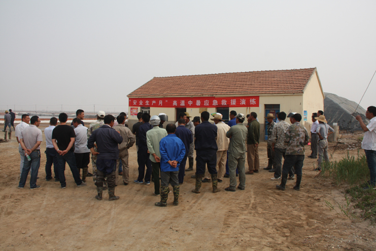 為了加強(qiáng)公司全員的安全預(yù)防意識,增強(qiáng)應(yīng)對緊急事件的自我保護(hù)和防衛(wèi)能力, 6月29日上午,灌西投資公司在新河制鹽分公司九班聯(lián)合舉行“高溫中暑應(yīng)急救援演練”活動,公司副總經(jīng)理古浩光、各單位分管安全領(lǐng)導(dǎo)、日曬制鹽一線班組長參加觀摩。
