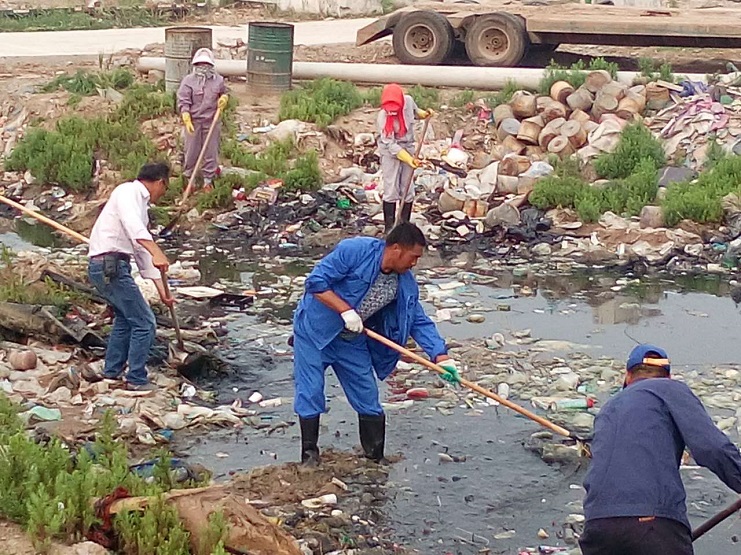 新河黨支部組織黨員職工疏通下水道。6月20日,黨員集中活動日。新河制鹽黨支部組織78名黨員及職工參與中二圩沿324省道一側(cè),約一千米下水道的垃圾清理。公司黨政工為方便作業(yè)給全體黨員、部分職工配備鐵耙、鐮刀。工作現(xiàn)場一片忙碌,黨員同志帶頭勞動,職工們不甘落后經(jīng)過一個多小時(shí)的勞動,現(xiàn)場由原來的一片狼藉的溝道瞬間變得比原來通暢、整潔了許多。(新河支部程龍)