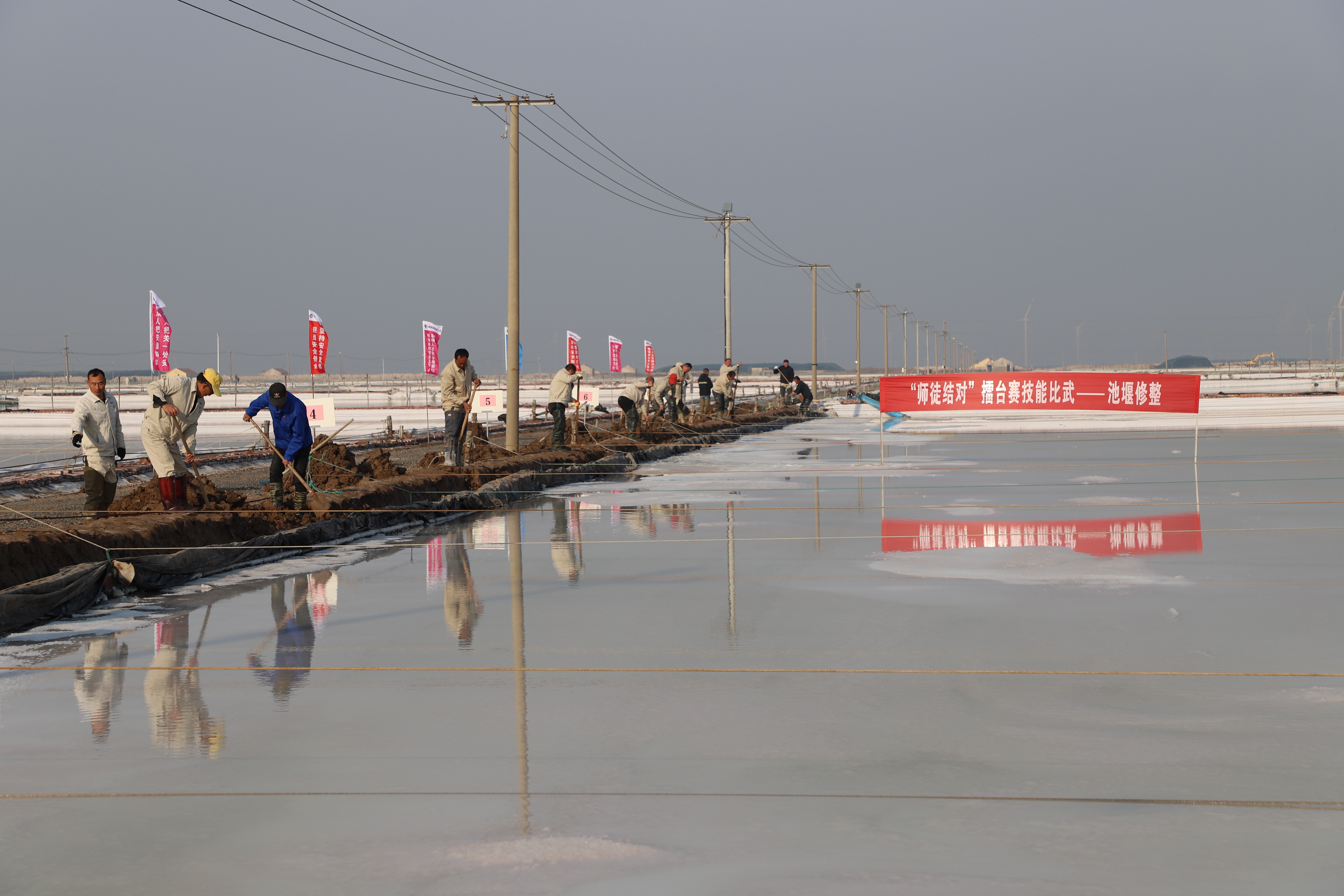 寒冬時節(jié),暖陽之下,鹽廩之旁,曬得黝黑的鹽場產(chǎn)業(yè)工人們按照競賽的考核標(biāo)準(zhǔn),做熟泥、打堰墻、做堰頂,護(hù)埝頂、夯埝坡、清塘底,由此,見證了一場技能比拼的盛會。