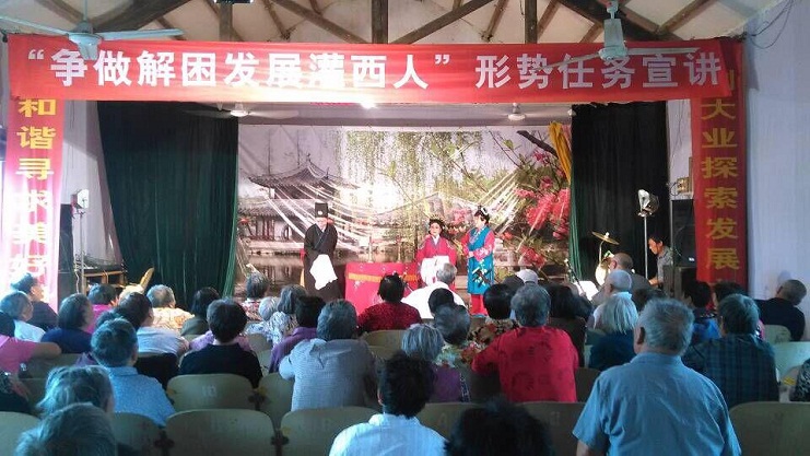 為豐富社區(qū)居民的業(yè)娛文化生活,社區(qū)淮海戲劇團(tuán)文藝宣傳隊(duì)開展迎國(guó)慶送戲到社區(qū)活動(dòng),分別于9月29日下午和晚間為社區(qū)居民送上了精彩紛呈的戲劇《珍珠塔》和《姐妹易嫁》,受到了社區(qū)居民群眾的熱烈歡迎和一致好評(píng)。(社區(qū)管理中心黨總支)