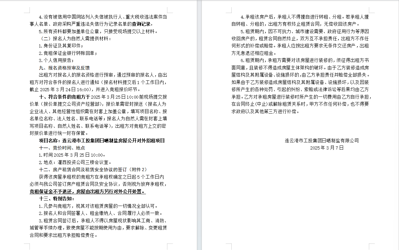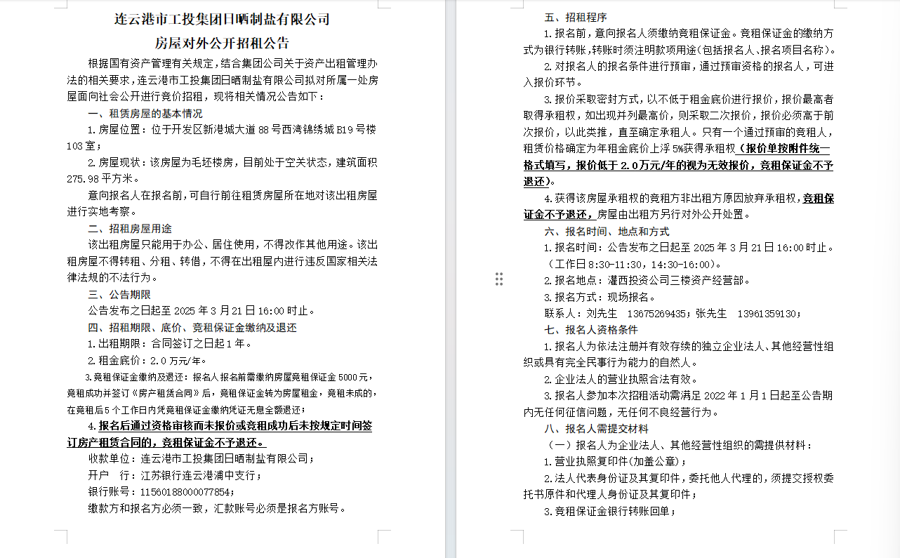 連云港市工投集團(tuán)日曬制鹽有限公司房屋對(duì)外公開招租公告