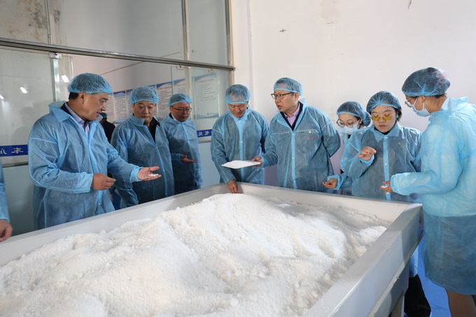 10月13日上午,蘇鹽協(xié)會副理事長伏運(yùn)景帶領(lǐng)省戰(zhàn)略與發(fā)展研究中心及省經(jīng)濟(jì)和信息化研究院相關(guān)研究人員一行,到我公司開展編撰省鹽行業(yè)年度發(fā)展報(bào)告相關(guān)企業(yè)調(diào)研。集團(tuán)公司黨委委員、總會計(jì)師匡友本,我公司主要領(lǐng)導(dǎo)陪同調(diào)研。伏運(yùn)景一行參觀了公司雪花鹽車間、包裝鹽車間,聽取公司基本情況和發(fā)展情況介紹。伏運(yùn)景對我公司充分重視本次調(diào)研工作表示感謝,肯定了鹽改以來我公司先導(dǎo)性發(fā)展經(jīng)驗(yàn)和成就。(金宣)