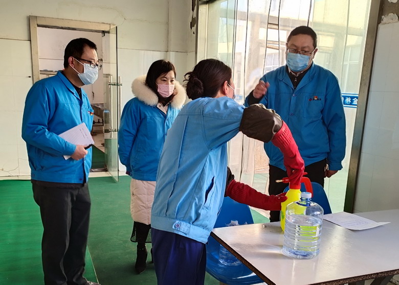 復(fù)工生產(chǎn)后,對進(jìn)廠職工進(jìn)行體溫測量,確保復(fù)工職工體溫低于37.3℃;要求所有進(jìn)廠職工必須佩戴口罩,防止交叉感染;統(tǒng)籌安排職工實(shí)行分區(qū)域、分時(shí)段就餐;每天對廠區(qū)辦公樓、車間、門衛(wèi)室、食堂等區(qū)域進(jìn)行消毒處理2次,充分做好廠區(qū)衛(wèi)生消毒工作。(金宣)