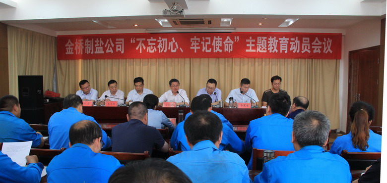 9月24日,金橋制鹽公司召開“不忘初心、牢記使命”主題教育動員會議,黨委書記、董事長、金橋制鹽公司主題教育領(lǐng)導(dǎo)小組組長朱桂玉作動員講話,要求全公司上下緊密團(tuán)結(jié)在以習(xí)近平同志為核心的黨中央周圍,以高度的政治責(zé)任感、良好的精神狀態(tài)、求真務(wù)實的作風(fēng),深入扎實地開展好主題教育,努力實現(xiàn)理論學(xué)習(xí)有收獲、思想政治受洗禮、干事創(chuàng)業(yè)敢擔(dān)當(dāng)、為民服務(wù)解難題、清正廉潔作表率的具體目標(biāo),以優(yōu)異成績慶祝新中國成立70 周年。集團(tuán)黨委主題教育第二指導(dǎo)組組長、集團(tuán)公司工會副主席盧同根,副組長、集團(tuán)黨群工作部副部長趙世聰?shù)綍笇?dǎo)。公司黨委副書記、紀(jì)委書記、工會主席李昊睿主持會議。副總經(jīng)理惠志明、曹開明、田磊參加會議。