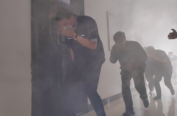 演練分為火災應急疏散、火災應急救援、有限空間應急救援三個部分展開。在火災應急疏散演練中,設定三樓會議室為模擬火災現(xiàn)場,人員2分鐘內從指定逃生路線規(guī)范、有序、迅速撤離到了安全地帶;火災事故應急救援和有限空間應急救援分別模擬紙箱庫著火及地龍有害氣體窒息,分信息報告、啟動應急響應、現(xiàn)場警戒、醫(yī)療救護、事故搶險等各處置環(huán)節(jié),整個演練緊張有序,過程流暢,達到檢驗應急預案的可行性和提高應急救援人員的應急處置能力的效果,為完善我公司應急預案提供實踐依據。