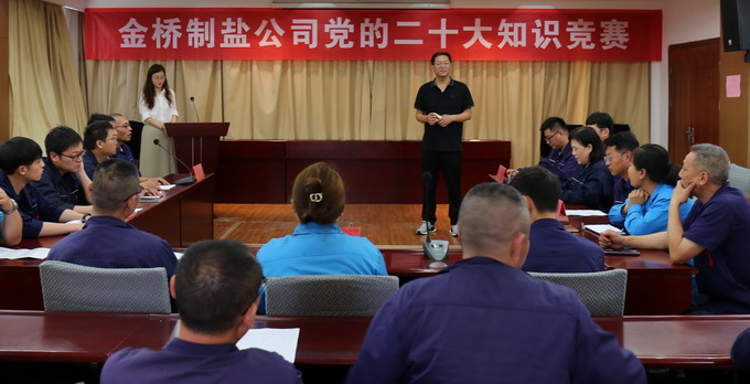 此次競(jìng)賽是公司慶祝建黨102周年“九個(gè)一”系列活動(dòng)之一,試題涵蓋黨的二十大報(bào)告、《中國(guó)共產(chǎn)黨章程(修正案)》、習(xí)近平總書(shū)記在黨的二十大閉幕式上的重要講話(huà)等內(nèi)容。競(jìng)賽分為必答題和共答題兩種題型,經(jīng)過(guò)三輪的激烈角逐,機(jī)關(guān)支部、加工鹽支部和配送中心支部分獲一二三等獎(jiǎng)。
