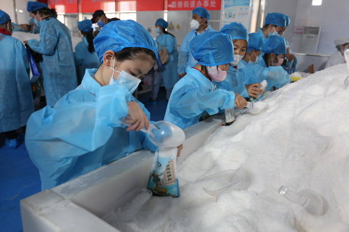 小朋友們首先參觀了包裝鹽車間生產(chǎn)線,對(duì)制鹽過程有了直觀的認(rèn)識(shí),接著來到雪花鹽車間體驗(yàn)手工包裝,提升參與感、獲得感。此次參觀體驗(yàn)活動(dòng),讓小朋友近距離感受家鄉(xiāng)的淮鹽魅力,很好的傳承了淮鹽文化。我公司作為省級(jí)文明單位,近年來,積極履行社會(huì)責(zé)任,多次與灌南縣尹蕩村、連云區(qū)大竹園村等單位開展文明共建,爭(zhēng)做文明使者,彰顯國(guó)企擔(dān)當(dāng)。(金宣)