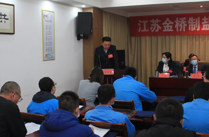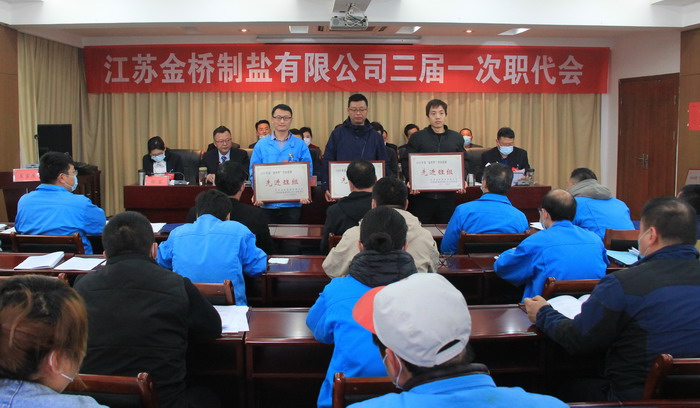 大會簽訂了《2021年度集體合同》、《2021年度經(jīng)營認(rèn)標(biāo)責(zé)任書》,與會代表認(rèn)真審議通過了總經(jīng)理工作報(bào)告,通過了大會決議、有關(guān)方案和意見。加工鹽車間、包裝鹽車間、銷售部依次作了表態(tài)發(fā)言。大會表彰了第九屆“金橋杯”勞動競賽、2020年“大干四季度”勞動競賽的先進(jìn)集體和先進(jìn)個(gè)人以及2020年度“金橋工匠”。(金宣)