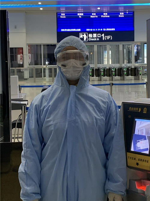 測量體溫看似輕松,但是對測溫槍反反復(fù)復(fù)的抬起放下,經(jīng)常累得胳臂酸疼。除了做好體溫檢測工作,每天還要回答成百上千名乘客的問題,維持秩序??此坪唵蔚脑捳Z、簡單的動作,但每天一個班次結(jié)束后,幾乎都是喉嚨嘶啞,她胳膊酸痛。因為工作的需要,幾乎每天一直都是站著工作,到家里腿都很僵硬。