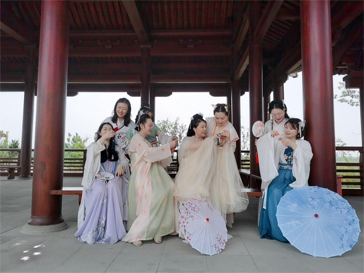 活動現(xiàn)場,來自金融板塊各部門的20余名員工,身著漢、唐、宋、明不同形制華美優(yōu)雅、端莊秀麗的漢服,攜手起舞,漫步在園博園的各個角落,為這個現(xiàn)代都市帶來了一抹醉人、古樸的文化氣息。著漢服的員工們重溫古代禮儀和儀式,感受中華文化的深厚底蘊。還開展了誦讀經(jīng)典、繡荷包、刺五毒、趣味吃粽子、“粽”橫四海等豐富多彩的端午主題文化活動,充分展現(xiàn)了員工生動的活力和熱情。在錦鯉游動、荷塘月色、彩蝶翩翩的園內(nèi),大家沉浸于濃濃的中華古風之中,用心感受著中華傳統(tǒng)文化的獨特魅力。此次活動展現(xiàn)了增強員工的凝聚力和歸屬感,為公司的發(fā)展注入了新的活力。