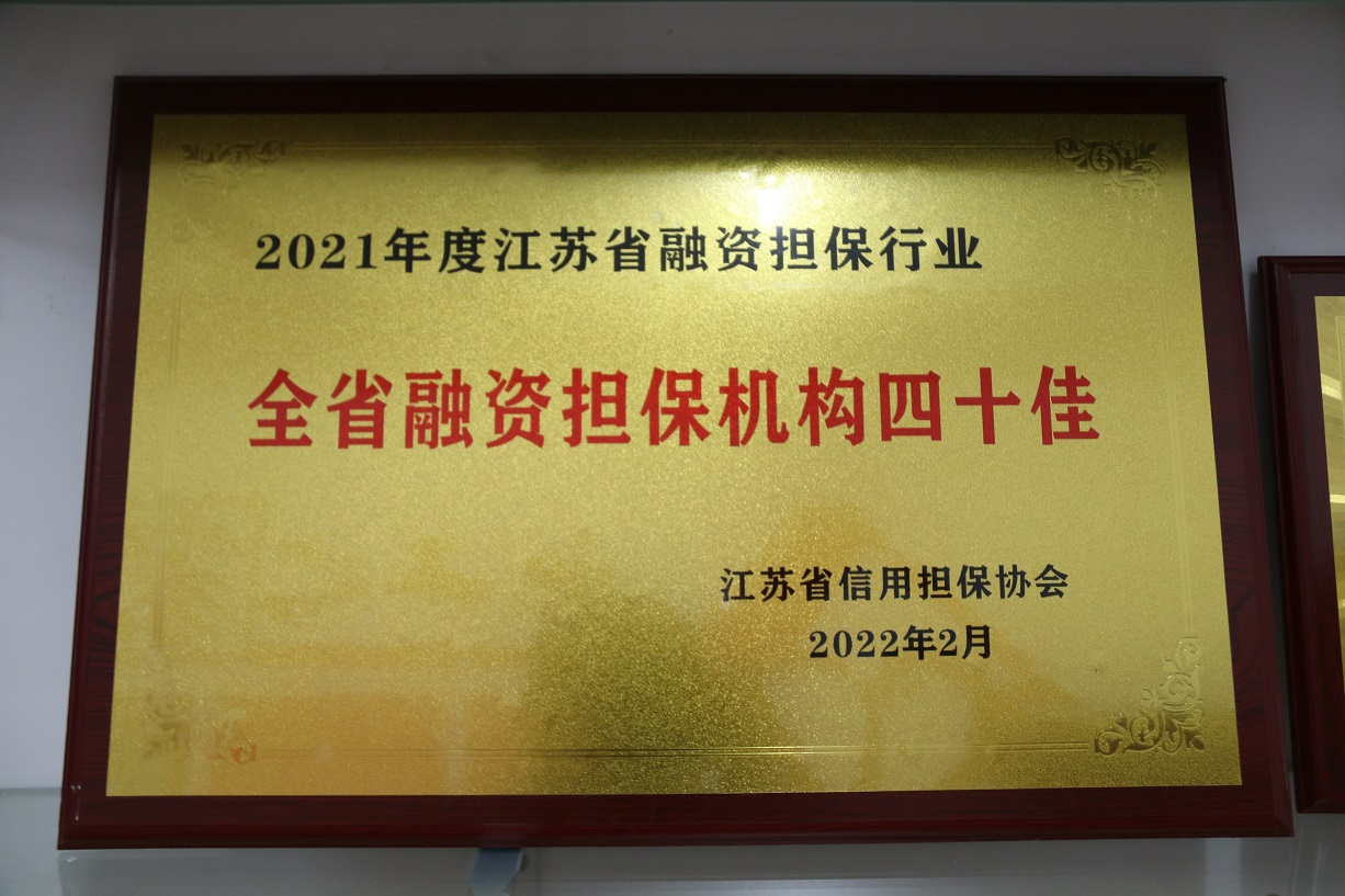 被省擔(dān)保協(xié)會(huì)評為“江蘇省2021年度融資性擔(dān)保機(jī)構(gòu)四十佳”。