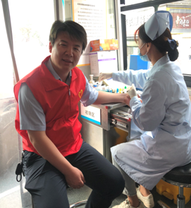 一大早,參加無償獻(xiàn)血的同志來到世紀(jì)華聯(lián)門口,秩序井然的排在獻(xiàn)血車前,等候醫(yī)生進(jìn)行血壓、脈搏等基礎(chǔ)檢查,并填寫相關(guān)表格。經(jīng)過仔細(xì)的體檢篩查,血液符合獻(xiàn)血要求的人,依次進(jìn)入獻(xiàn)血區(qū),獻(xiàn)上了寶貴的血液。