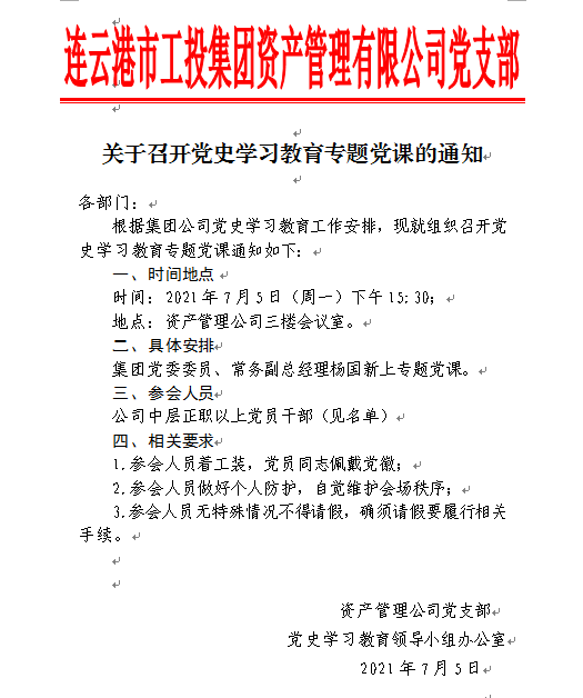 關(guān)于召開黨史學習教育專題黨課的同志