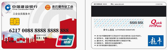 下圖為工會(huì)會(huì)員服務(wù)卡卡樣,連云港市總工會(huì)發(fā)行的工會(huì)會(huì)員服務(wù)卡只此一種設(shè)計(jì),請(qǐng)認(rèn)準(zhǔn)連云港市總工會(huì)logo和工會(huì)會(huì)員服務(wù)卡字樣,若同此圖不同均非工會(huì)會(huì)員服務(wù)卡。