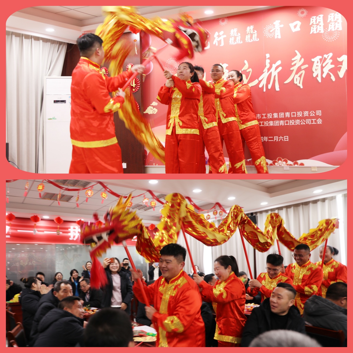 家國(guó)書(shū)寫(xiě)新篇章,巨龍騰飛耀東方。開(kāi)場(chǎng)舞《中華舞龍》拉開(kāi)了聯(lián)歡序幕,預(yù)示新的一年青口投資公司干部職工將接續(xù)奮斗,以更加昂揚(yáng)的姿態(tài)、更加飽滿(mǎn)的熱情,積極投身高質(zhì)量轉(zhuǎn)型發(fā)展的藍(lán)圖建設(shè)。