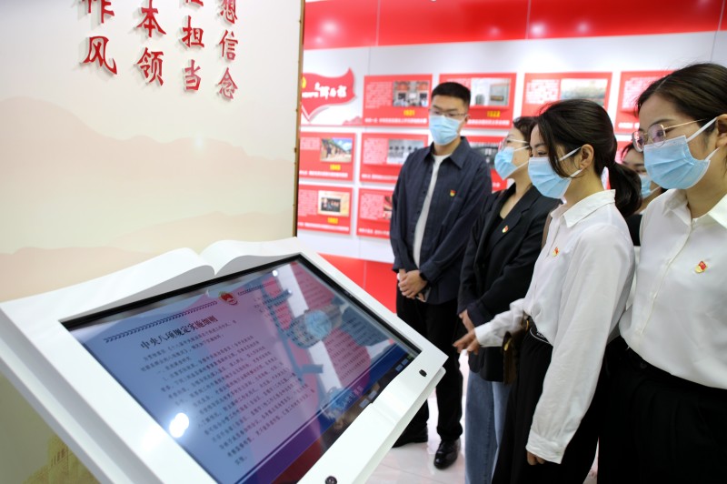 首站,青年干部們來到海州區(qū)檢察院,接受警示教育洗禮。在講解員的帶領(lǐng)下,大家先后參觀了融媒體中心、黨員干部廉潔教育基地、廉潔教育互動點播等展廳,回顧了中國共產(chǎn)黨的光輝歷程,并運(yùn)用“正面典型+反面案列”相結(jié)合的方式,通過以案說紀(jì)、以案釋法,教育引導(dǎo)青年干部以此為鑒、吸取教訓(xùn),自覺抵御各種誘惑,扣好廉潔從業(yè)的“第一??圩印?。
