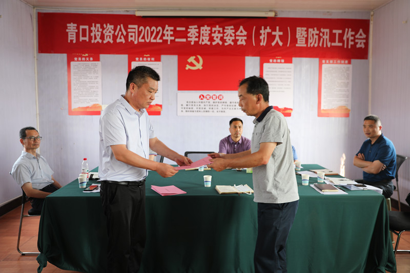 演練結(jié)束后,工作會在承擔(dān)主要防汛任務(wù)的三洋分場召開。會上,生產(chǎn)安全部匯報二季度安全工作情況,副總經(jīng)理許太冬傳達《關(guān)于深刻汲取近期事故教訓(xùn)采取嚴厲措施堅決遏制事故多發(fā)勢頭的通知》,副總經(jīng)理楊守明布置公司安全工作及防汛工作,各單位遞交2022年度防汛工作責(zé)任書。