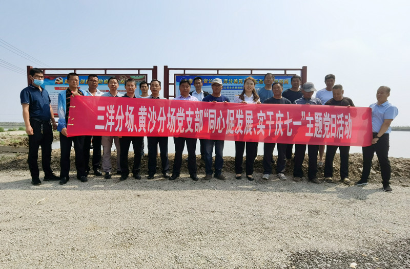 在“同心促發(fā)展 實(shí)干慶七一”主題黨日活動現(xiàn)場中,三洋分場、黃沙分場黨支部邀請長期在全國從事漁業(yè)科技服務(wù)的珠江水產(chǎn)研究所彭勇鰲工程師,深入到池塘的養(yǎng)殖一線,查看、詢問養(yǎng)殖戶們在養(yǎng)殖過程中遇到的難題,并有針對性地做出養(yǎng)殖新技術(shù)幫扶和推廣志愿服務(wù)活動,為養(yǎng)殖戶們排憂解難,不斷提高養(yǎng)殖效益。
