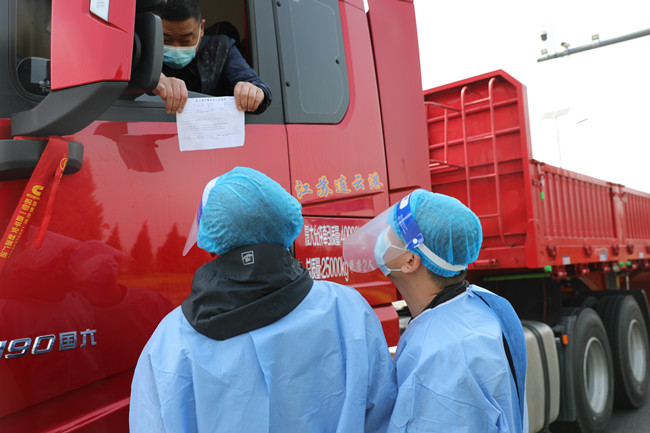 “您好!請(qǐng)出示一下行程碼、健康碼、核酸檢測(cè)陰性證明。”4月8日上午七點(diǎn),青口公司黨員志愿者已經(jīng)開啟一天的工作,對(duì)大貨車進(jìn)行逐一排查,對(duì)不符合過境條件的司機(jī)立即勸返。