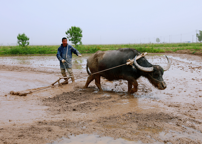 ▲不用揚(yáng)鞭自?shī)^蹄,深耕細(xì)作促生產(chǎn)。田間還會(huì)遇見(jiàn)牛蹄疾步穩(wěn)、耕地拖平難得一見(jiàn)的傳統(tǒng)生產(chǎn)場(chǎng)面,對(duì)于小部分高低不平的田塊用牛找平較為方便,保證了在春耕各環(huán)節(jié)上做到精益求精。(仲偉彬、劉 楊)