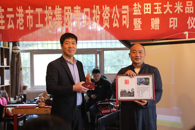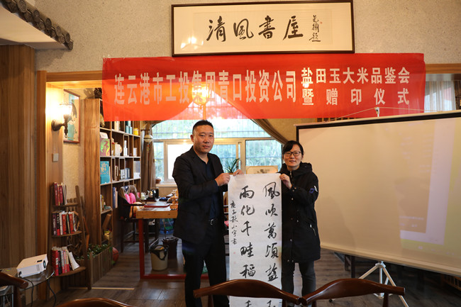 10月16日,青口投資公司米業(yè)營(yíng)銷中心在海州區(qū)清風(fēng)書屋開展“鹽田玉大米品鑒會(huì)暨贈(zèng)印活動(dòng)”。投資公司董事長(zhǎng)胡傳法、中國(guó)書法家協(xié)會(huì)會(huì)員汪鐵穎以及部分連云港市海州區(qū)書法家協(xié)會(huì)會(huì)員參加活動(dòng)。