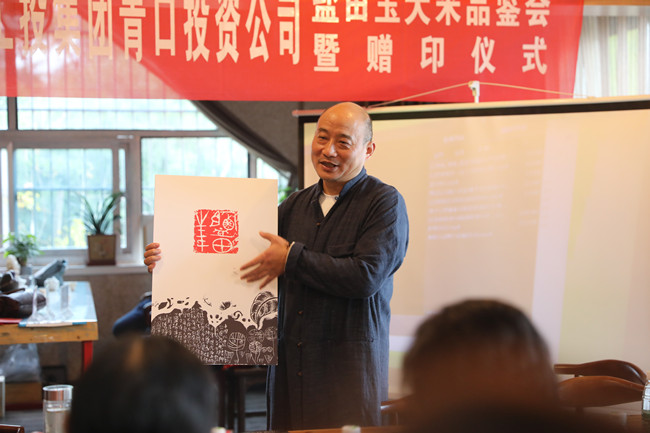 中國(guó)書法家協(xié)會(huì)會(huì)員汪鐵穎老師受邀為“鹽田玉”篆刻了一枚方印,在活動(dòng)現(xiàn)場(chǎng)為大家解讀了方印的設(shè)計(jì)理念和內(nèi)涵,并將此印隆重地贈(zèng)與米業(yè)營(yíng)銷中心。活動(dòng)中,米業(yè)營(yíng)銷中心向與會(huì)人員贈(zèng)送了“鹽田玉”文創(chuàng)系列產(chǎn)品,并邀請(qǐng)書法協(xié)會(huì)的老師現(xiàn)場(chǎng)為“鹽田玉”品牌揮毫潑墨。
