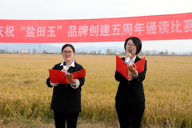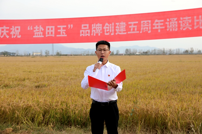 ? ?金秋十月,稻浪播香,又到一年豐收季。為慶祝“鹽田玉”品牌創(chuàng)建五周年,營(yíng)造企業(yè)文化氛圍,展現(xiàn)職工群眾健康向上的精神風(fēng)貌,10月25日下午,投資公司于萬畝稻田間舉行慶祝“鹽田玉”品牌創(chuàng)建五周年誦讀比賽。公司黨委委員、副總經(jīng)理周緒祥,各單位黨政工負(fù)責(zé)人、機(jī)關(guān)全體管理人員,大新農(nóng)場(chǎng)條田工,米業(yè)營(yíng)銷中心生產(chǎn)銷售團(tuán)隊(duì)參加活動(dòng)。