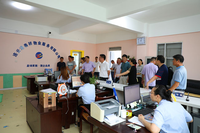 與會人員在泰祥物業(yè)服務(wù)班組工作人員的指引下,先后參觀了小區(qū)微型消防站、地下車庫、物業(yè)服務(wù)中心等處,聽取了相關(guān)情況介紹。