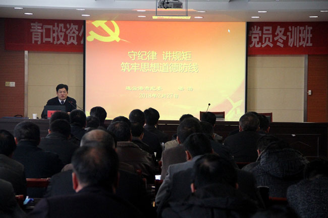 為加強(qiáng)黨員干部廉潔教育,提高拒腐防變意識,2月27日下午,青口公司邀請市紀(jì)委監(jiān)委、第八紀(jì)檢監(jiān)察室主任梁浩作了題為《守紀(jì)律 講規(guī)矩 筑牢思想道德防線》的專題報告,公司領(lǐng)導(dǎo)班子成員和全體在崗黨員參加此次講座,紀(jì)委書記史祥平主持。