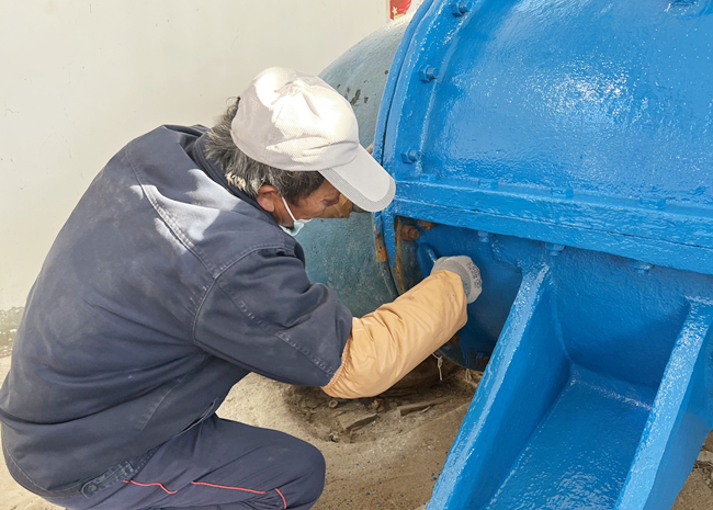 供排水設(shè)備檢修養(yǎng)護(hù)是入冬前的一項(xiàng)重要工作,立足于“不停水、保質(zhì)量”的原則,服務(wù)中心揚(yáng)水站抓住生產(chǎn)用水間隙統(tǒng)籌安排部署,做實(shí)揚(yáng)水站水泵機(jī)組、機(jī)電設(shè)備、配電設(shè)施的檢修預(yù)案。對水泵機(jī)組設(shè)備進(jìn)行除塵、除銹、加潤滑油、更換老化部件。