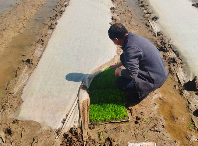 近期,大新農(nóng)場(chǎng)組織對(duì)自營(yíng)農(nóng)田機(jī)插秧集中檢查,目前秧苗生長(zhǎng)正常已達(dá)到1.5-2葉秧齡。由于天氣良好溫度持續(xù)上升,預(yù)計(jì)5月下旬即可揭開無(wú)紡布進(jìn)行秧苗管理,6月上旬開始插秧。(劉 楊)