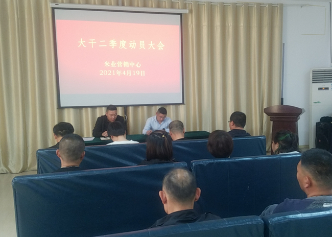 ? ? ? ?4月19日,米業(yè)營銷中心召開大干二季度動員大會,進一步貫徹落實投資公司二屆一次職代會暨第二次工代會會議精神,結合“崗位建新功、創(chuàng)效爭一流”大干二季度勞動競賽,規(guī)劃部署米業(yè)全年工作,分解全年銷售任務,以分解量化的季度指標,以月保季、以季保年,緊扣工作目標,明確責任分工,凝心聚力,共謀發(fā)展。