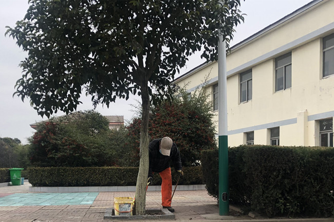 服務(wù)中心為樹木刷白做好冬季防護(hù)