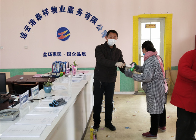 自新型冠狀病毒感染的肺炎疫情發(fā)生以來,泰祥公司所有的保潔、保安堅(jiān)守崗位,兢兢業(yè)業(yè),奮戰(zhàn)在疫情防控工作的第一線。為了確保他們的身體健康并感謝他們家人的理解,在消毒液緊缺的情況下,公司率先錯(cuò)時(shí)為他們發(fā)放酒精和84消毒水,并及時(shí)告知使用酒精和84消毒水的注意事項(xiàng)。(趙萌萌)