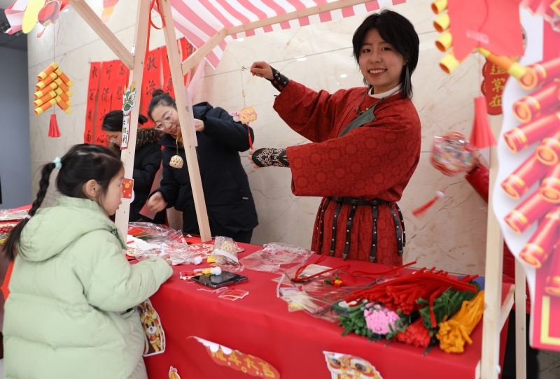 剪窗花、寫對聯(lián),是迎接新年必不可少的傳統(tǒng)習(xí)俗,承載了我們對新一年的美好期望。在傳統(tǒng)民俗區(qū),大家沉浸式體驗這些傳統(tǒng)習(xí)俗,有的揮毫潑墨,“寫春送?!保械募艏埣那?,剪出各種各樣象征生肖、團圓、吉祥的窗花,不一會兒,一幅幅滿載新年祝福的春聯(lián),一張張年味濃濃的窗花,就展現(xiàn)在大家面前。