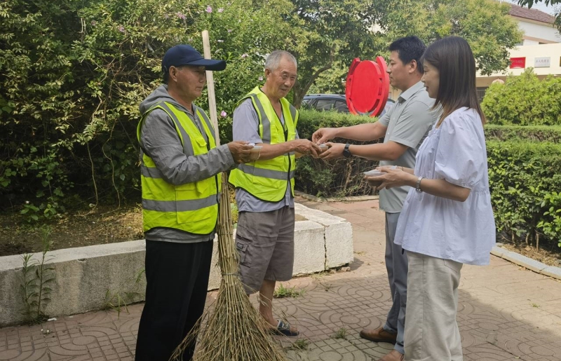 烈日炎炎,有這樣一群人在驕陽下依然堅守在自己的工作崗位上,他們就是黃沙坨美容師——環(huán)衛(wèi)工人。為了給高溫下辛苦工作的環(huán)衛(wèi)工人送去一份清涼,讓他們能夠以良好的狀態(tài)投入到保潔工作中,近日,生產(chǎn)生活服務(wù)中心分會將熬制好的綠豆湯分裝在碗內(nèi),送給正在作業(yè)的環(huán)衛(wèi)工人。同時,為他們科普防暑降溫知識,叮囑他們提高安全健康意識,合理調(diào)整工作時間。