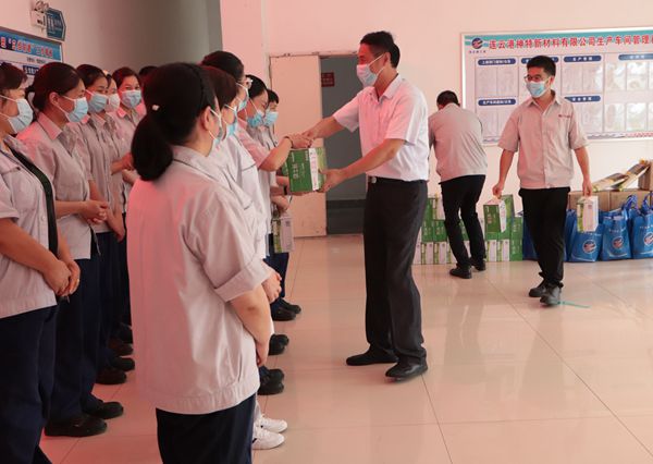 陳總向高溫下堅守崗位的一線職工進行慰問,細心叮囑要認真做好防暑降溫和疫情防控工作,并送上綠豆、大米等防暑降溫慰問品,為在炎炎夏日堅守一線的職工送來一份清涼,帶來一片關(guān)懷。(神特宣)
