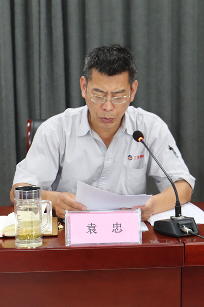 公司工會主席袁忠宣讀百日勞動競賽、技能大賽表彰文件,表彰先進,鞭策后進。